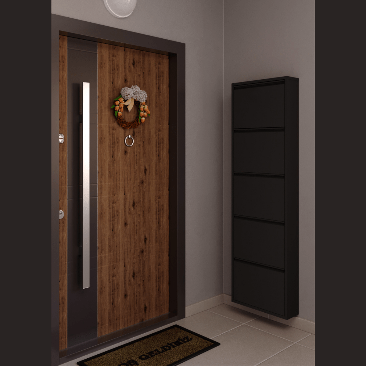 Vijf afzonderlijke klepvakken openen en sluiten gelijktijdig voor snel en overzichtelijk opbergen. Elk compartiment biedt plaats aan circa twee paar schoenen, goed voor een totale capaciteit van ongeveer tien paar. Geïntegreerde handgrepen zorgen voor comfortabele bediening, terwijl de krachtige magneetsluiting de fronten strak en naadloos gesloten houdt, zonder zichtbare kieren.
